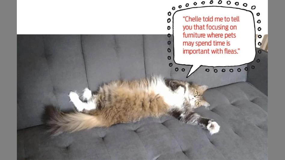 Just like mosquitoes, getting treatment to the right areas is key for flea control. Fleas are hiding in cracks and crevices indoors. Ask customers where their pets spend the most time and target those areas, particularly around baseboards, furniture edges and behind appliances and furniture. Since treatments are targeted at the immature stages, insect growth regulators are a great addition. Fleas have complete development (egg, larvae, pupae, adult) and the IGRs act on the larval stage to prevent them from developing into reproductive adults.