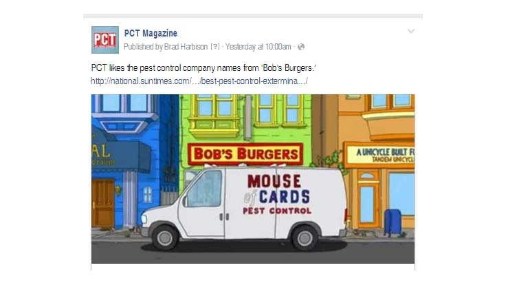 A couple of recent links PCT has shared on these sites, include a look at pest control companies featured on ‘Bob’s Burgers’ and a link to the incredible story about a man surviving the Australian desert by eating ants.