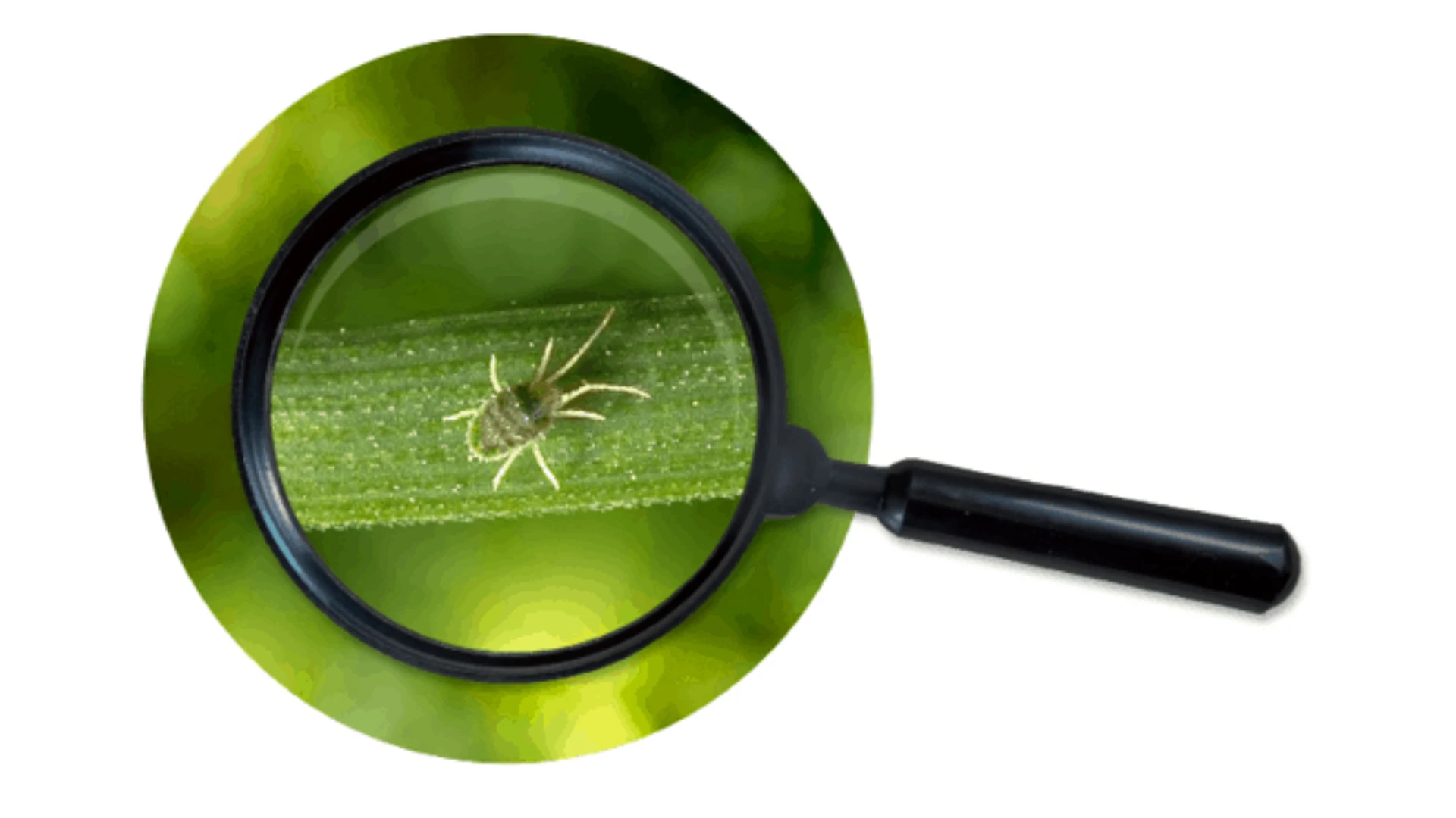 Clover mites can be easily confused with other small mites such as bird mites, rodent mites, grain mites or even larval brown dog ticks. Clover mites are best identified by the fact that their front pair of legs (out of four pair total) are much longer and are held forward, looking more like antennae than legs. Tiny clover mites (1/64-inch or .75 mm) look like barely visible dots, and are best seen when a group of them are moving together on a surface.