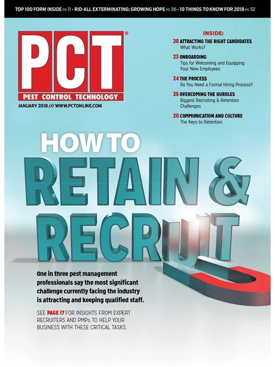 Maybe that’s one of the reasons two-thirds of PMPs say that service technician is the position most difficult to fill. Other potential reasons: Crawlspaces. Spiders. Snakes. Hornet nests. Technicians need a fairly courageous constitution to go out and do battle with pests every day. They also need detective skills and perseverance, says Lieberman. “This job doesn’t lend itself to rote memorization. You have to be inquisitive, pay attention and be a problem-solver. That’s not everybody,” he says.