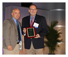 Chris Stelzig, director of Certification for the Entomological Society of America, presented the first ACE Award to Robert Caine, president of Pest Control Specialists, Miami, Fla.