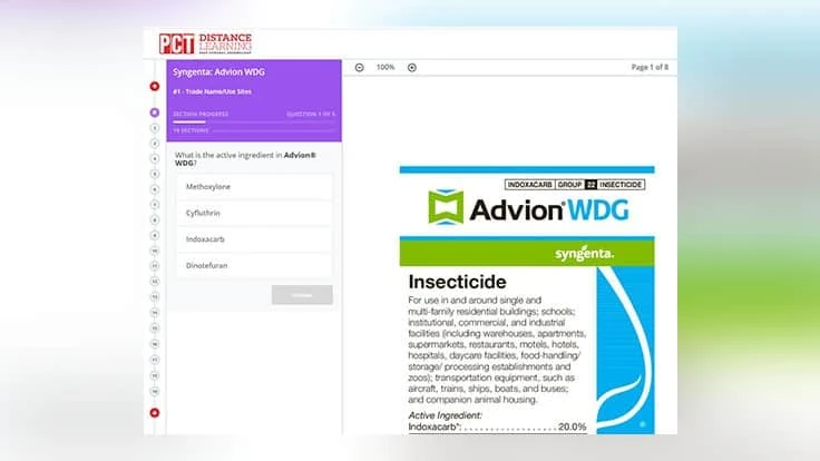 CLEVELAND, Ohio — PCT announced the addition of the following label training module: Advion WDG from Syngenta.