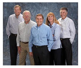 Agri-Turf Distributing’s management team: Rich Records (center), Chuck Synold (left), Rick Foreman (2nd from left), Donna Browne, Tom Boyd (right). |