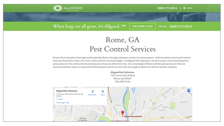 The relocated Rome branch is fully equipped to offer Allgood home pest control services for more than 80 species. The team currently treats active seasonal pests — ants, bed bugs and termites — as well as year-round nuisance pests.