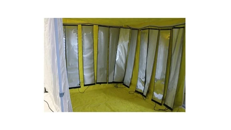 The Bed Bug Sauna measures eight feet long by eight feet wide by six feet high. Twenty heat panels are used inside to produce temperatures from 120°F to 145°F, which is lethal to insects. Using only two 15-amp power circuits and 3400 total watts, the Sauna produces results with less power and energy than convection heat. Learn more at www.amcanproducts.com.