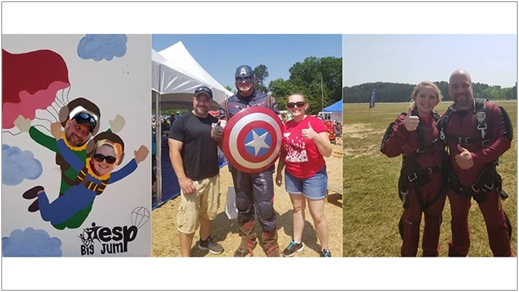In 2017, American Pest Control’s CEO, Laurie Higginbotham, participated in Big Jump as a celebrity skydiver. This year, Laurie served as the co-chair of the event. American Pest Control technician Andy Deutsch and customer service representative Amber Puckett decided to embark on the skydiving adventure together before their marriage this summer. Naming their team Ampest Sweethearts, Amber and Andy campaigned for months to raise the donations needed to participate as skydivers. With the help of coworkers, friends, and family, they raised $1,225 for Extra Special People’s programming. That amount was then matched by American Pest Control for a total donation of $2,450!