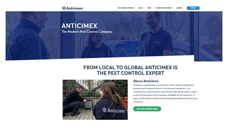 The site features the latest news articles from various US divisions and provides supporting material on Anticimex state of the art pest control technology called Anticimex SMART.