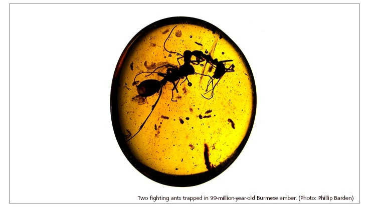Several species of ants, well-preserved in ancient Burmese amber, were studied by Phillip Barden, a biologist at Rutgers University-Newark.