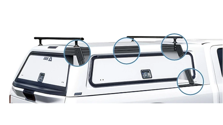 The centerpiece of the rugged and reliable HD Series is an interior aluminum support framework which reinforces the sturdy fiberglass cap construction by routing all roof rack and toolbox weight to the bedrail of the pickup truck, which nearly triples load capacities, allowing a 550 pound capacity on the HD Series roof rack and 200 pounds in each toolbox. Optional heavy duty side doors open easily to provide access to two steel toolbox inserts. For added privacy and security, the side and rear doors can be upgraded with aluminum inserts with foldable t-handles featuring BOLT(r) one-key lock technology.