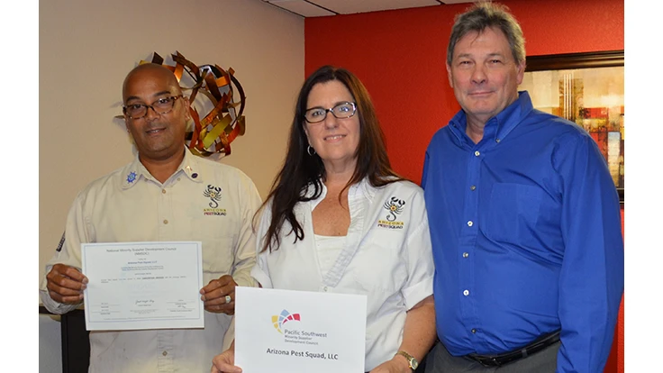 PHOENIX, Ariz. — Arizona Pest Squad was recently certified by the City of Phoenix and Arizona Department of Transportation as Small Business Enterprise (SBE) and a Disadvantaged Business Enterprise (DBE) by the City of Phoenix. The company also received certification as a Minority Business Enterprise (MBE) from the National Minority Supplier Diversity Council (NMSDC).
