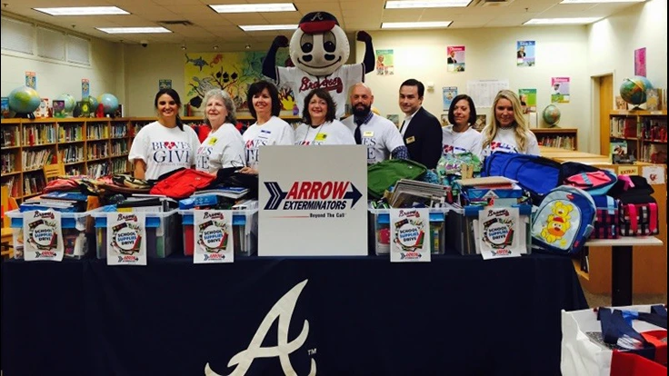 In order to collect materials, Arrow Exterminators asked both customers and team members to drop off supplies at multiple stations set up at Arrow’s Service Centers throughout Metro Atlanta. The Atlanta Braves also gathered supplies at their home playing field, Turner Field, during assigned baseball games, as well as at their Back to School Bash which was hosted during a Braves game over the summer.