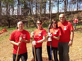 Members of the Arrow team help out at a tree planting event. Left to right: Mike Malone, Kimberly Beaudin, Lauren Bullington, Kevin Malone. |