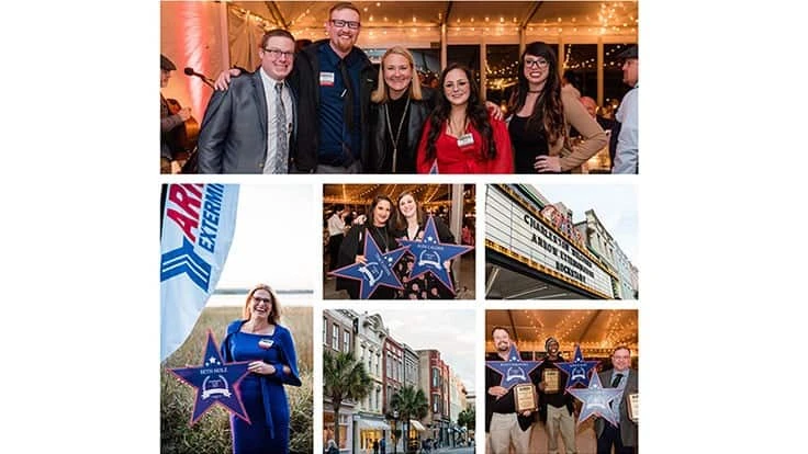 ATLANTA — Arrow Exterminators recently held the company’s annual Pinnacle Club weekend in Charleston, S.C., to recognize the company’s top producing service professionals and inside sales specialists. This achievement is earned by reaching goals set for sales and outstanding service efforts. The Pinnacle Club also recognizes members of Arrow’s management team who achieved their safety goals for their service centers for the past fiscal year.