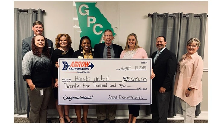 ATLANTA – Atlanta-based Arrow Exterminators recently announced their pledged donation to The Hands United Foundation that was created by the Georgia Pest Control Association (GPCA) in 2017. Arrow has committed to donate $5,000 each year for the next five years, to equal $25,000, in order to benefit families of the GPCA, the Certified Pest Control Operators of Georgia, and the general Georgia pest control industry that have been affected by catastrophic or life changing events.