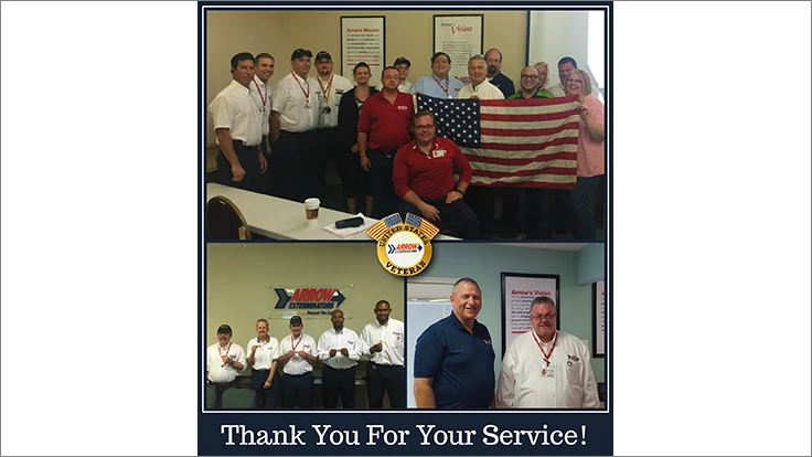 “We presented our team members with these veteran pins the week before the Fourth of July holiday since this is a day to give thanks, to pay tribute and to remember those who gave their lives to protect our country and gain our independence,” said Emily Thomas Kendrick, chief executive officer and president of Arrow Exterminators. “In reality, we should be thankful every single day of the year. We thank these folks for their service from the bottom of our hearts.”