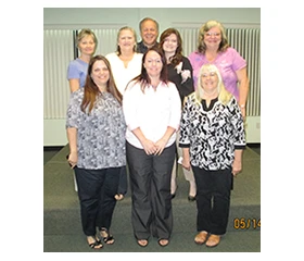 Pictured from left to right are: Front row - Meladie Higgins, Melissa Knight and Mary Senseney; Middle row - Collette Trent, Cindy Johnston, Lacy Thompson and Juli Zeka; and – Kevin Burns. |
