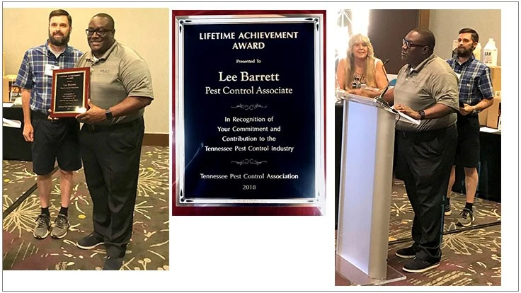 NASHVILLE, Tenn. — The Tennessee Pest Control Association (TPCA) honored Nisus’ Lee Barrett with the Lifetime Achievement Award.