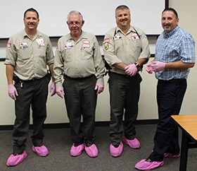As part of a Breast Cancer Awareness Month initiative, Batzner service professionals will be wearing pink shoe covers and pink gloves during their service visits throughout October. |