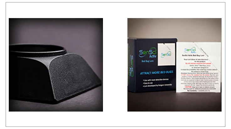 The SenSci Volcano is a bed bug monitor that has a clear bottom for ease of inspection, designed for minimal dust disruption and is discreet in appearance, which makes it ideal for all spaces. The Volcano can be used alone or paired with the SenSci Activ lure. The SenSci Activ is a bed bug lure designed to mimic the chemicals on the surface of the skin in order to attract bed bugs to a monitor.