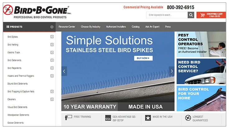For more information on Bird B Gone, call 800/392-6915; fax: 949-472-3116 or visit our website at www.birdbgone.com, e-mail: nobirds@birdbgone.com.