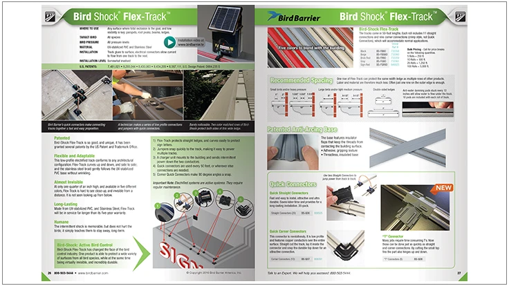 CARSON, Calif. — Bird Barrier America has released its 2016 Bird Control Catalog, which is replete with new products to make bird control installations faster and easier. Bird Barrier is a leader in humane bird control, providing a comprehensive line of bird control products that are used around the world. Whether pigeons roosting on a ledge, swallows building mud nests under eaves or seagulls invading a courtyard are the problem, Bird Barrier offers a variety of solutions. Some of the newly introduced products include: