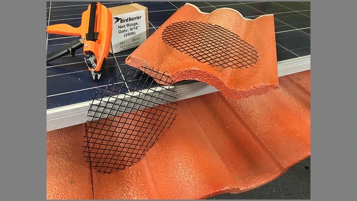 CARSON, Calif. — Bird Barrier announced the introduction of Eggxit, a new tool that fills the valleys between Spanish Tiles on solar-panel exclusion jobs. Solar panel exclusion work has become one of the most common forms of bird control, Bird Barrier says. Eggxit’s engineered egg-shape dips into the troughs between Spanish tiles and is hog-ringed to the mesh above. Bird Barrier says PMPs can cut Eggxit in half and use both ends, or, the product works for capping open ends of Spanish tiles. One of the product’s highlights is its ability to rotate. The ends are designed to fit any tile size, style and configuration, the manufacturer says. Also, pitching Eggxit outward a little when attaching puts an end to even the strongest of intruders.Bird Barrier says Eggxit makes solar work easier, more profitable and gets technicians off of delicate Spanish tile roofs as fast as possible. Learn more at www.birdbarrier.com.