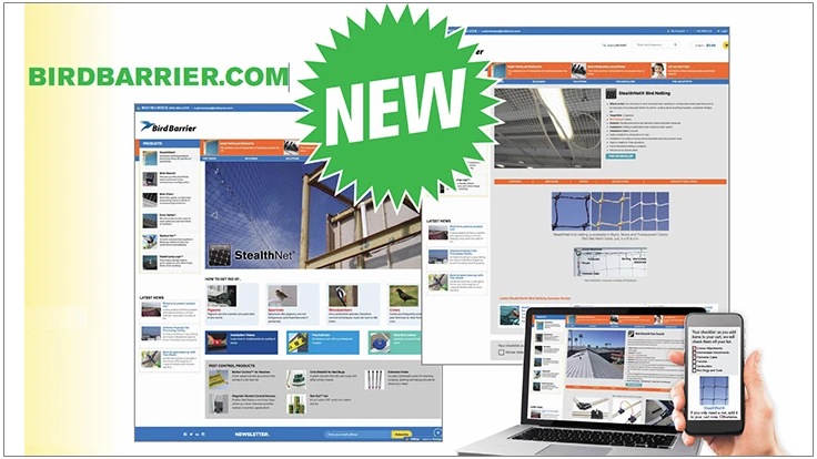 CARSON, Calif. — Bird Barrier America has unveiled a new and improved website, www.birdbarrier.com, bringing expanded resources and user-friendly efficiencies to its customers using the latest online technology. Since 1993, Bird Barrier has been a leading manufacturer and supplier of pest bird control, specializing in innovative solutions to deter pest birds humanely and effectively. Its comprehensive product line includes StealthNet, Bird-Flite, Dura-Spike, Optical Gel, Bird-Shock Flex-Track, Eagle Eye and Daddi Long Legs.