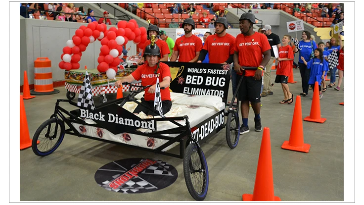 LOUISVILLE, Ken. — Black Diamond Pest Control participated in the Kentucky Derby Festival Great Bed Races for the first time earlier this week. This event has kicked off the infamous Kentucky Derby week for the last 17 years. The pest control company spent three weeks prior to the race building their bed on wheels and decorating it as the “World’s Fastest Bed Bug Eliminators” observing the event’s theme of “Race for the Cup.”