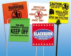 Blackburn Mfg. offers both rigid markers and flags with custom or industry messages to mark outdoor application areas of herbicides, pesticides and more. Rigid markers are available in both heavy card stock and corrugated. Standard vinyl flags come in 15 colors.