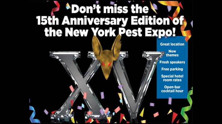 In 2017, the New York Pest Expo will be marking its"15th Anniversary Edition." This celebration will feature lectures by Dr. Reid Ipser on Pesticide Families, Modes of Action and Overcoming Resistance, David Nardolilli, BCE, on Filth Flies in the Commercial Arena, Dr. Faith Oi on Ant Management - Choosing the Right Formulation, James Rodriguez, ACE, on Rodent Control - Inside and Out, Dean Stanbridge on Cockroach Control - A Reality Check and Lou Sorkin, BCE, on Bed Bugs and Other Persistent, Irritating, Hard-to-Kill Pests. The Expo, which has grown into one of the most significant events in pest management, will be presented on Friday, November 10, 2017 from 8:00 am to 6:00 pm. It will be held at the George Washington Bridge Doubletree Hotel in Fort Lee, NJ. This great venue will allow for free parking and special room rates. Attendees can view exhibits and discuss product features with major manufacturers and business support providers and take advantage of great promotions and discounted pricing on supplies and equipment. In addition to breakfast, lunch, gifts, prizes, recertification training, exhibits and special offers, admission will also include an open-bar reception at the end of the program. Admission is $150.00 (by October 31); late registration is $200.00 (after October 31). For complete information on the 2017 New York Pest Expo and to register online, visit bugoffpccenter.com. You may also call 212-781-2304 or email andy@bugoffpccenter.com.
