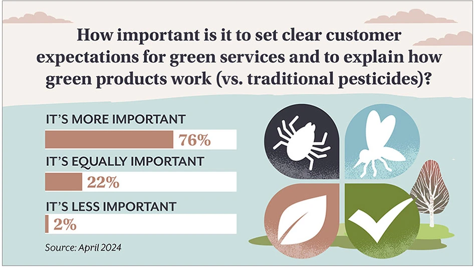 Seventy-six percent of those who responded to PCT’s most recent poll said it is more important to set clear customer expectations for green services and to explain how green products work (vs. traditional pesticides).
