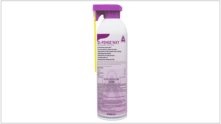D-Fense NXT breaks the life cycle of bed bugs and other listed pests. The product has no PPE requirements and contains 0.20 percent novaluron, 0.06 percent deltamethrin and 0.02 percent pyriproxyfen. D-Fense NXT is available in a 15-ounce can with 360-degree valve and dual spray and straw applicator.