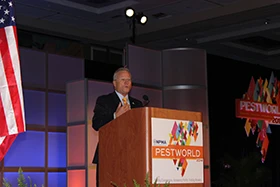NPMA President Billy Tesh addresses PestWorld '14 during the opening ceremony. |