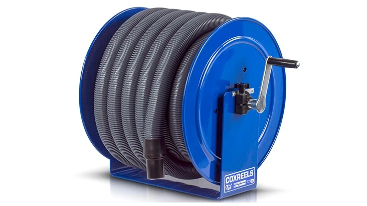 Coxreels V-100 Series product has been improved and is now offered with hose. With a redesigned fluid path, the V-100 Series features improved O-ring sealing for greater vacuum consistency and performance in addition to a new swivel retention system, which has strengthened the frame and prevents separation of the swivel under excessive lateral loading. Along with the redesign, another improvement is zinc plating of the swivel components for greater corrosion protection.