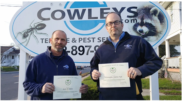 "We're very proud of the work Scott and Chris did and the knowledge they gained in order to become certified ACEs," said Bill Cowley, Co-owner, Cowleys Pest Services "It means a lot to have nationally-recognized, certified experts as part of the company."