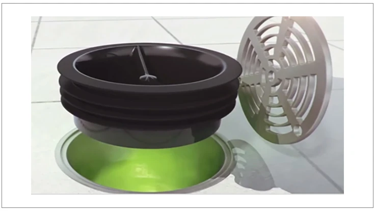 Green Drain is used in the outlet connections of floor drain bodies or the inside of floor drain strainers to seal the opening to help prevent odors, sewer gases, and insects like drain flies and fruit flies from entering up thru the floor drain. Green Drain’s flexible silicone sealing ribs ensure easy installation into openings that may have variations in size. Green Drain will open to allow drainage and close when there is no water flow. The Green Drain can be used in either new construction or as a retrofit. Green Drain is available in 2”, 3”, 3.5” and 4” sizes.