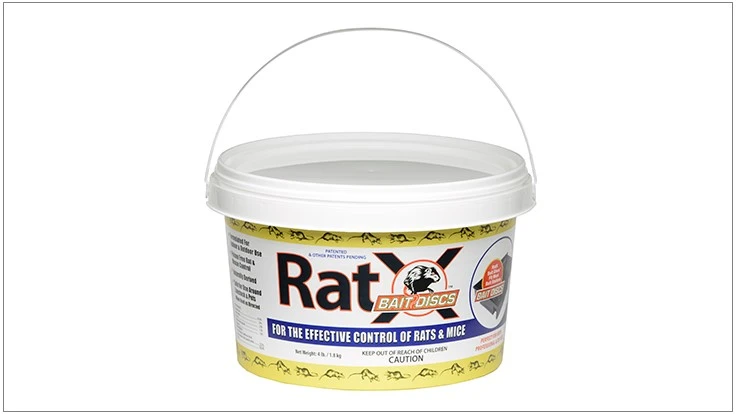 RatX Bait Discs patented formula works specifically by targeting the unique digestive systems of rats and mice. Once ingested, dehydration commences causing blood thickening and circulatory collapse. Rodents then become lethargic, retreat to the burrow, lapse into a coma and die. RatX Bait Discs are safe around people, pets and wildlife, according to the manufacturer.