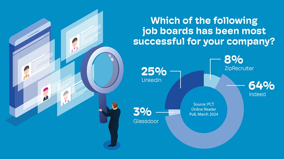 CLEVELAND – In today’s challenging job recruiting environment, job boards have become an important tool for recruiting new employees. According to results from PCT’s most recent poll, 64 percent of those who responded to PCT’s recent poll said Indeed is their preferred job board, while 25 percent chose LinkedIn. Eight percent of respondents selected ZipRecruiter as their preferred job board while 3 percent chose Glassdoor.