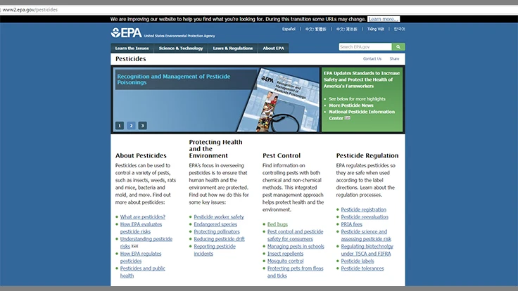 WASHINGTON — EPA’s Pesticides website has a new look, feel, and address. Many of EPA's stakeholders have noticed the agency's gradual move to new versions of its content as part of the larger EPA effort to build a more user-friendly website. EPA reports that with the new pesticides website, information should now be easier than ever to access, regardless of the type of electronic device they use, including tablets and smartphones.