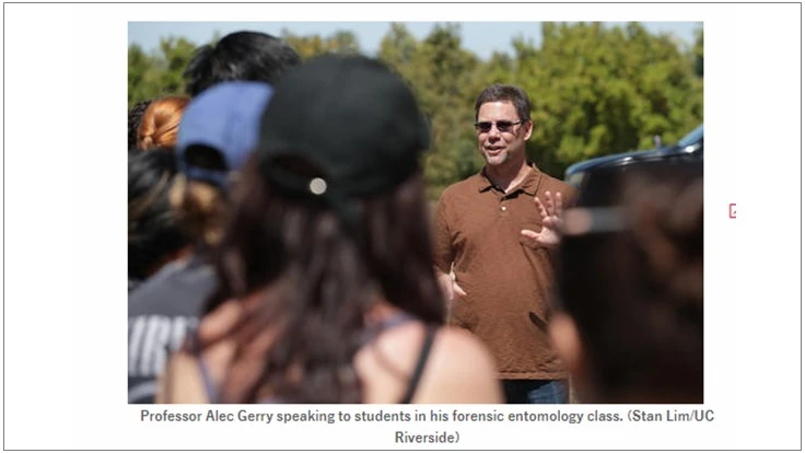 The recent UCR article "Maggots and murder: what insects can teach us about crime" examined Gerry's course, in which students learn to interpret insect clues to aid legal investigations.
