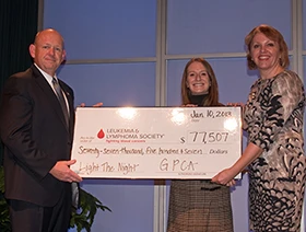 The Leukemia & Lymphoma Society (LLS) relies heavily on funds raised through the GPCA. Since 2004, member companies of the GPCA have raised $876,000 to help fight blood cancers. Their goal is to reach the $1 million mark this year to celebrate their decade of participation with the Light The Night Walks.
