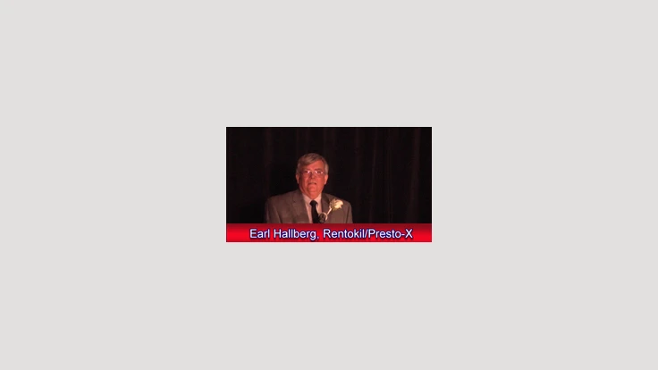 Earl Hallberg, longtime technical director for Rentokil/Presto-X, was recognized for his contributions to the pest control industry.