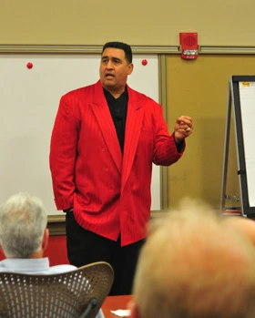 Brian Holloway, NFL Pro Bowler from the New England Patriots, was the guest speaker and roused the group with a message celebrating the fun of winning |