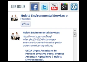 WEST PALM BEACH, Fla. — You may have thought widgets were limited to those imaginary production items bought and sold in your later years of high school economics class. Not anymore. Hulett has brought the widget to life, to social media life, on bugs.com, their company website. Hulett’s widget allows bugs.com users to view the latest postings to all of Hulett’s social media venues in one convenient viewer window. Simply click on a story and it will take you to that social media site. Whether it’s Twitter, Facebook, YouTube, Google + or their corporate blog, the widget allows viewers to see the latest social media posts scrolling on bugs.com in real time.
