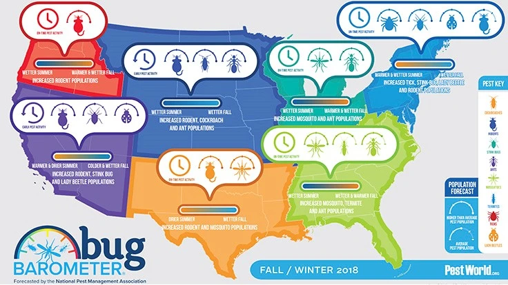 Experts from @PestWorld are predicting increased pest pressure this fall and winter. Check out which pests will be active near you, according to the Bug Barometer's forecast.