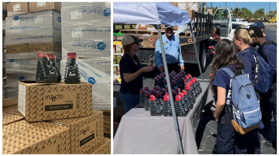 LEE COUNTY, Fla. — A truck stocked with 5,000 mosquito traps arrived at Northwest Exterminating’s Naples, Fla., location in October. The shipment was a donation from Inzecto, which enlisted the University of Florida through funding assistance from the Pentagon to develop eco-friendly control devices that could be distributed to deployed soldiers. This is one batch of 100,000 traps donated in four Florida counties impacted heavily by Hurricane Ian.