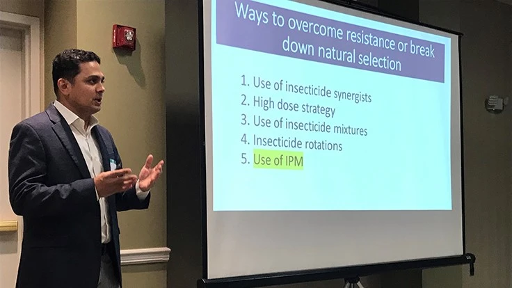 IPMA President Scot Wright welcomed attendees to the annual meeting. Presenters included Scott Robbins, technical director at Action Pest Control; Fred Whitford, director of Purdue Pesticide Programs; Todd Brown, Northern regional sales manager at BASF; Ameya Gondhalekar, associate professor at Purdue University; and David Scott, pesticide administrator with the Office of Indiana State Chemist.