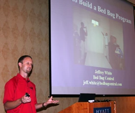 CHICAGO - Day two of the North American Bed Bug Summit, held last week in Chicago, included a presentation from Cooper Pest Solutions Research Entomologist Jeff White titled “How Do I Put a Program Together.” White discussed essential elements of a comprehensive program, noting that there are several models that will work for a bed bug program. For example, some companies have created separate bed bug “teams” while others use route technicians. White said there are pros and cons to both strategies.