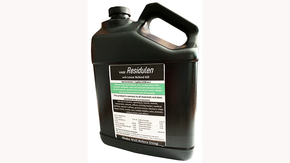 J.F. Oakes announced the release of VA88 Residulen with Leave Behind Kill, a 25(b) insecticide with a two-phase formula. It kills bed bugs on contact and provides six-month residual protection, according to the supplier.
