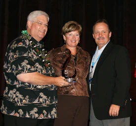HONOLULU — Karie Keown, director of sales training and development, Rentokil North American Pest Control, was presented with this year’s Women of Excellence Award, by Orkin USA President John Wilson and NPMA President-Elect Ray Johnson, during PestWorld today.
